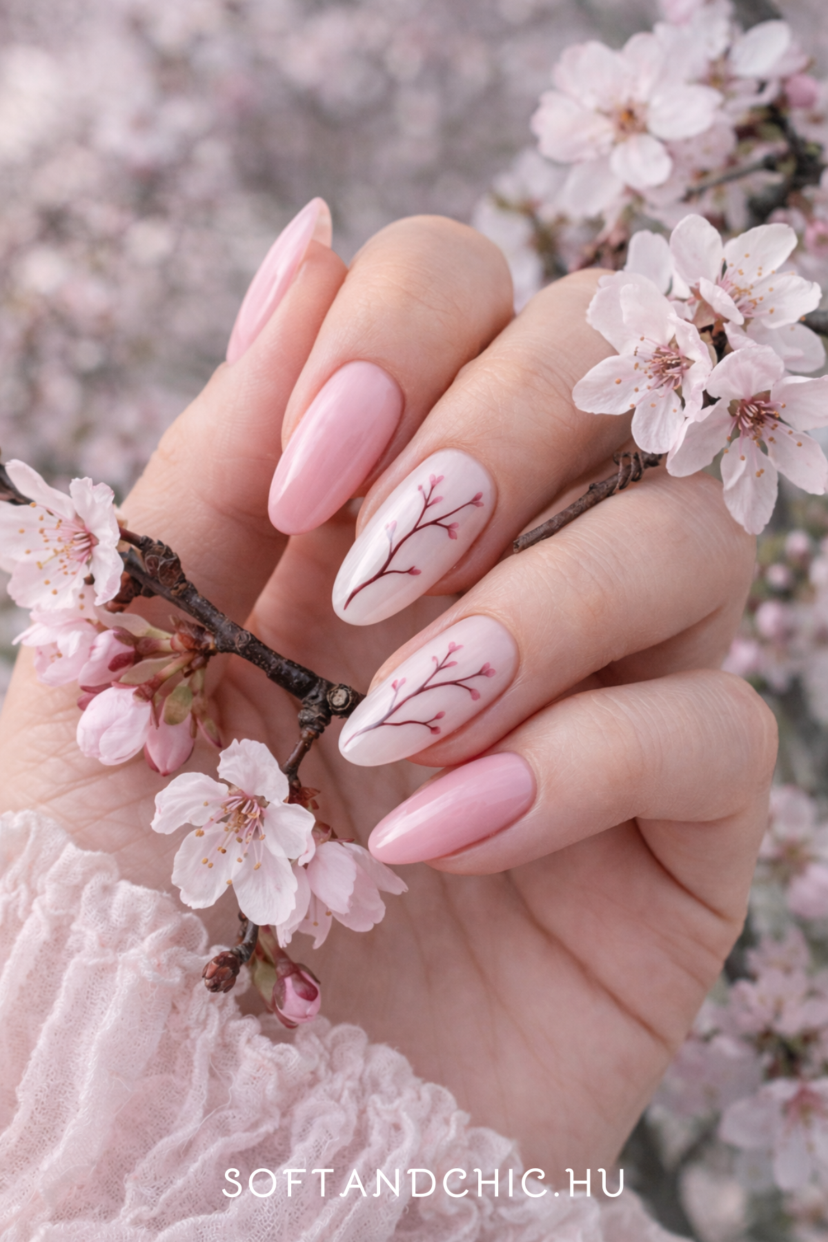 A tavaszi körömtrendek egyik legizgalmasabb iránya, amely a klasszikus romantikát modern formába önti.